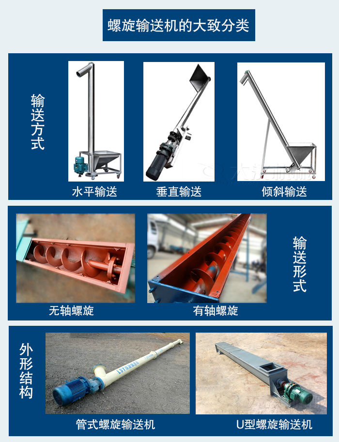 螺旋輸送機從外形結構可分為:管式和U型的螺旋輸送機。