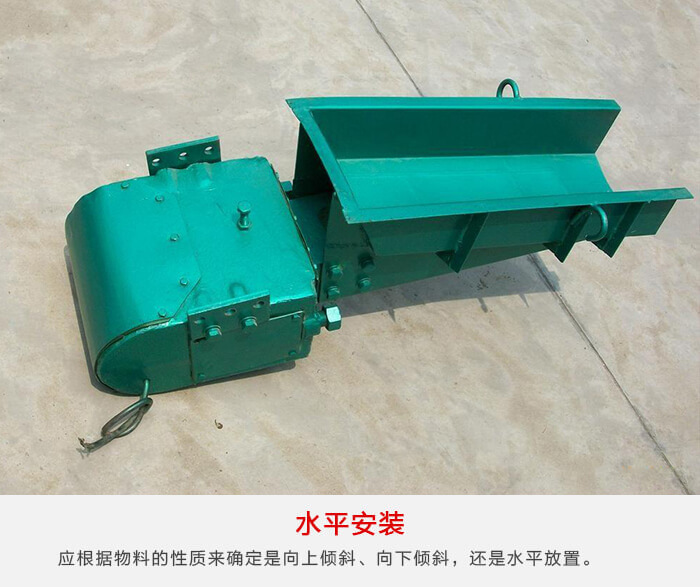 電磁振動給料機槽體可以水平安裝,也可以傾斜安裝,其給料能力與下傾角度成正比,但下傾角過大容易引起物料自流,難以保證給料精度。因此應根據物料的性質來確定是向上傾斜、向下傾斜,還是水平放置。