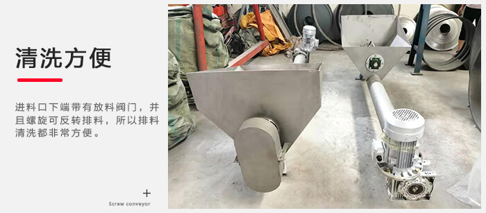 進料口下端帶有放料閥門,并且螺旋可反轉排料,所以排料、清洗都非常方便。