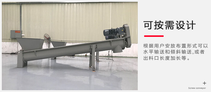 可以根據用戶安放布置形式可以水平輸送和傾斜輸送,也可以將出料口按照用戶要求的角度生產,如出料口要求傾斜多少度,或者出料口長度加長等。
