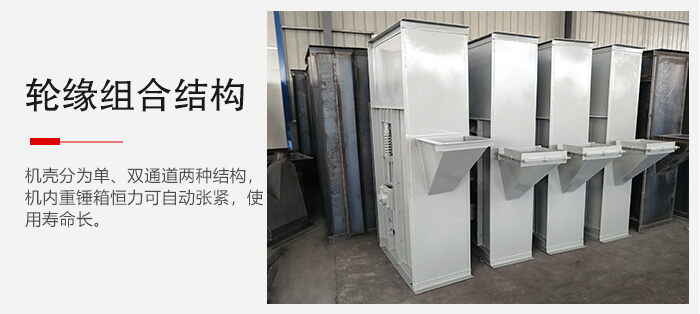 整機(jī)機(jī)殼分為單、雙通道兩種結(jié)構(gòu),機(jī)內(nèi)重錘箱恒力可自動(dòng)張緊,鏈輪為可更換輪緣組合式結(jié)構(gòu),更換簡(jiǎn)便;使用壽命長(zhǎng),