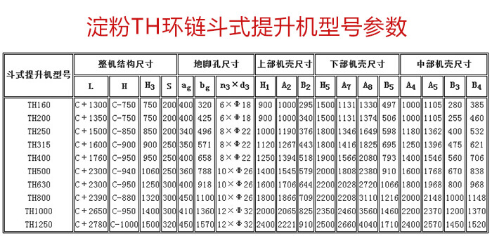 粉TH環(huán)鏈斗式提升機(jī)型號(hào)有TH160、TH250 、 TH315、TH400 、TH500等。同時(shí)大漢機(jī)械支持產(chǎn)品特殊定做,根據(jù)您的要求為您定制出合適的設(shè)備!