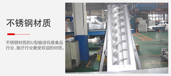 為了滿足市場需求,其U型螺旋輸送有著不同的材質構成,其可分為三種材質一:碳鋼的材質其材質是一種普通的螺旋輸送機材質,具有一般的耐磨性和使用性,二是:高錳鋼材質其材質是最為高級的材質,具有較高的耐磨性,相對碳鋼其耐磨性要高出一倍較多,三就是:其不銹鋼材質的U型螺旋輸送機,不銹鋼是食品行業,醫療行業最為受歡迎的材質。三種不同材質可供選擇。