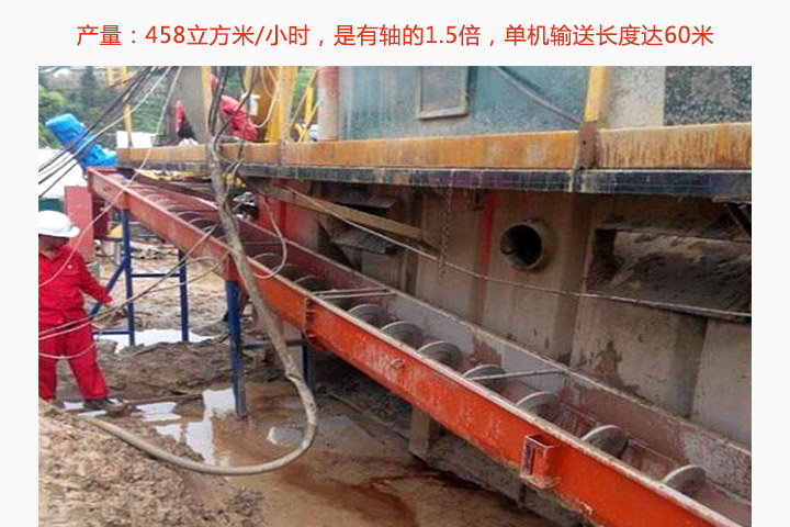 輸送量大,距離長:無軸螺旋輸送機產量達458立方米/小時,是有軸的1.5倍,扭矩可達4000N.m,單機輸送長度達60米。