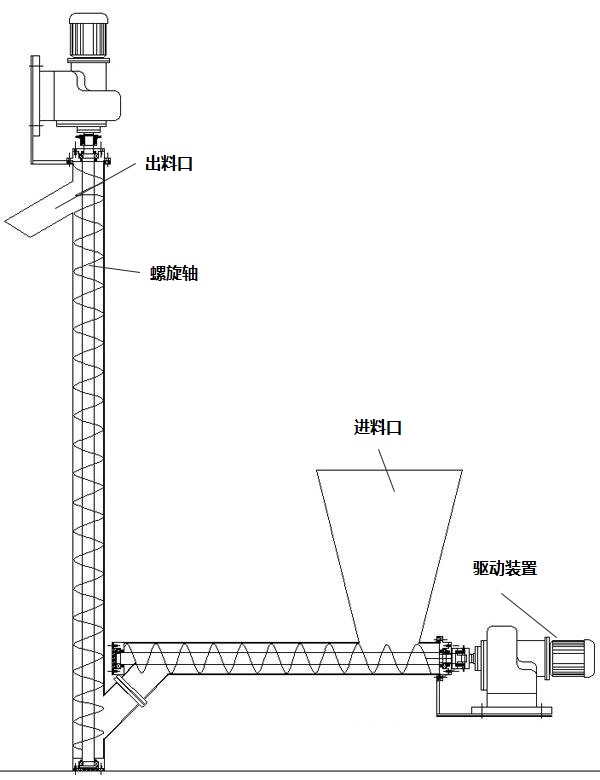 物料隨螺旋高速旋轉(zhuǎn),被輸送的物料從水平部分的進(jìn)料口加入,通過旋轉(zhuǎn)的水平進(jìn)料螺旋送入輸送機(jī)和垂直部分,然后將物料向上推至出料口出料口由垂直螺旋,物料隨螺桿高速旋轉(zhuǎn),被輸送的物料從水平部分的進(jìn)料口加入,通過旋轉(zhuǎn)的水平進(jìn)料螺旋進(jìn)入輸送機(jī)。和垂直部分,然后用垂直螺旋將物料推到出料口排出。