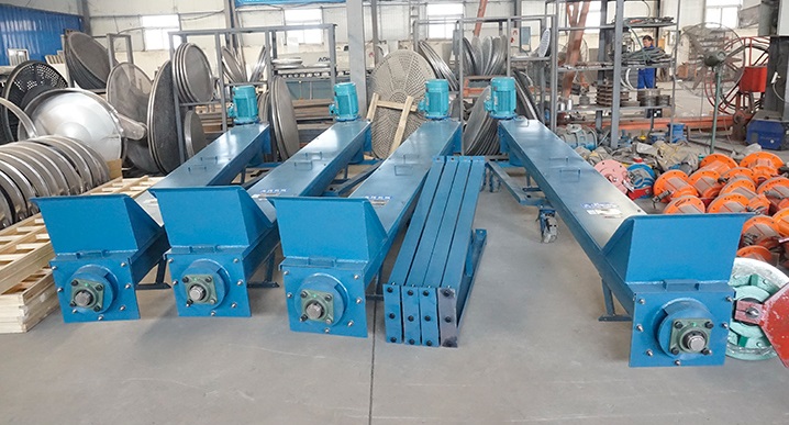 當物料加入固定料槽時,由于物料自重和機槽之間的摩擦,會堆積在機槽上,物料在旋轉的螺旋葉片的推動下向前運動,從而達到水平方向上的輸送的。