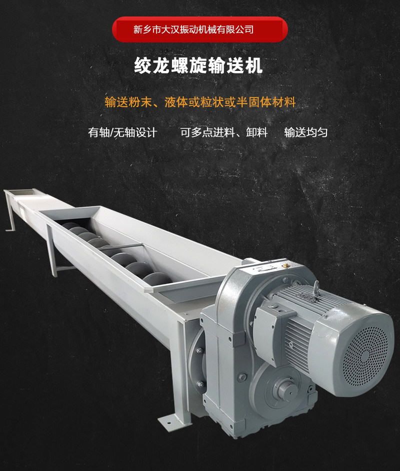 除此以外,絞龍輸送機還可根據輸送物料的性質選擇碳鋼、不銹鋼材質,也可設計為雙軸或多種形式。